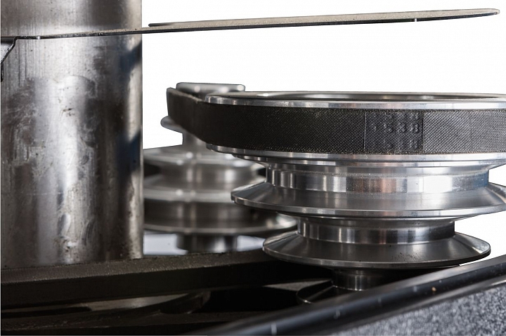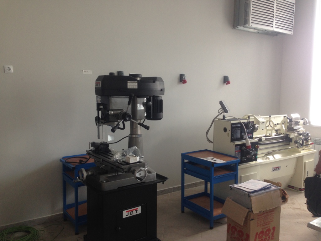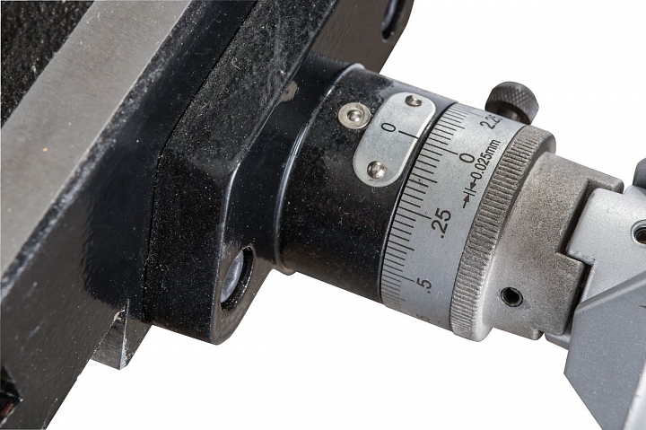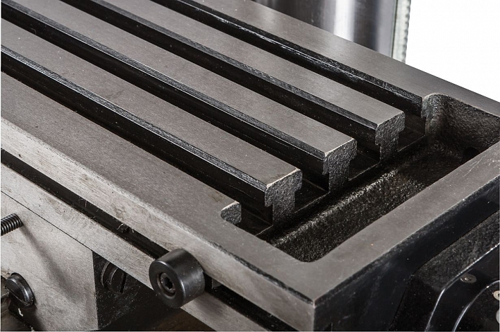 Моторная группа станка имеет мощный асинхронный двигатель - 1,5 кВт, имеющий функцию реверса. Благодаря реверсу шпиндель может вращаться вправо и влево. Наличие ременной передачи с концевым выключателем, позволяет выполнять обработку в 12-ти скоростных режимах. Частота диапазона вращения шпинделя составляет 125-2500 об/мин. Крестовый стол с 3-мя Т-образными пазами шириной 16 мм, позволяют выполнять установку дополнительной оснастки. Рабочий стол оснащен прецизионным механизмом.