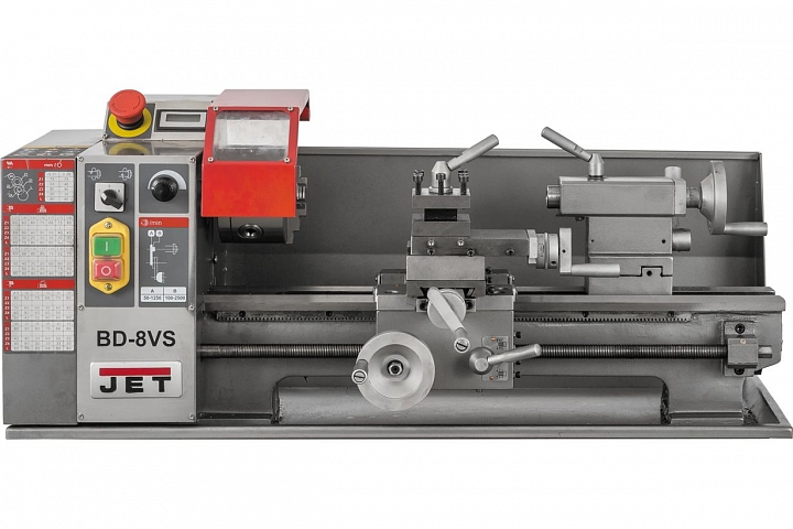 Особенности:Станок JET BD-8VS – относится к классу настольных токарных станков. Станок поставляется с поддоном для сбора стружки и через поддон прикручивается к тумбе или верстаку. Несмотря на свои маленькие габариты станок способен обрабатывать заготовку диаметром до 210 мм над станиной, а если точить над суппортом, то этот диаметр уменьшается до 135 мм. При этом максимальная длина обработки (РМЦ) составляет внушительные 400 мм.