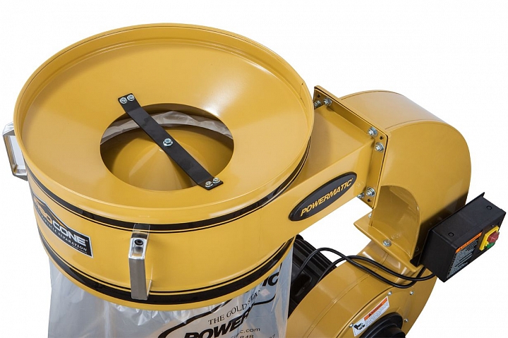 Powermatic PM1300CK-M производительная аспирационная установка, штатно оборудованная 2-микронным фильтром со встроенной системой самоочистки (стряхивания мусора в мешок при повороте рукоятки). Важная особенность модели – полностью металлический воздуховод: из стали сделана «улитка», крыльчатка, рукав до фильтра, сам корпус к которому присоединяются фильтр и пылесборник, а также внутренняя часть корпуса (конический сепаратор) системы TurboCone. Последняя способствует более полному отделению мусора под действием центробежных сил и повышает плотность его укладки в мешке за счет физического разделения зон складирования и турбулентности.